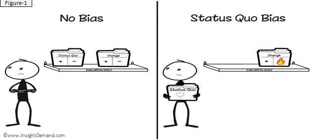 KILL THE STATUS QUO BIAS: By performing a risk assessment of the status quo, customers will be motivated to change because they will realize that the risk of the status quo is now greater than the risk of change (see Figure-1).